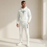 Available in five classy colours—Black, Navy Blue, Charcoal, Grey, and White—this tracksuit is designed to match every personality and preference. Whether you’re heading out for a morning walk, chilling at home, or stepping out with friends, the PRADA Track Suite keeps you comfortable and stylish.